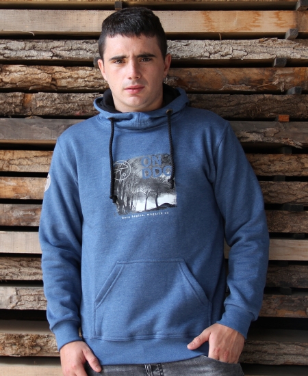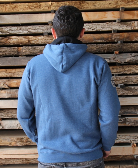 - Color: azul y cordones y forro de la capucha en negro.