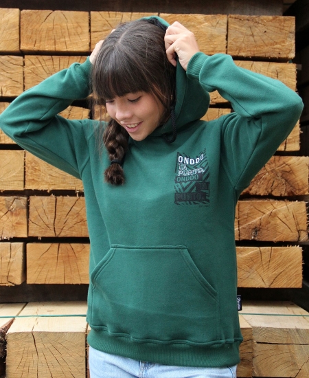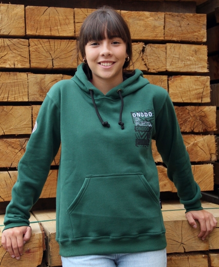 - Color: verde oscuro. Cordones y forro de la capucha en negro.