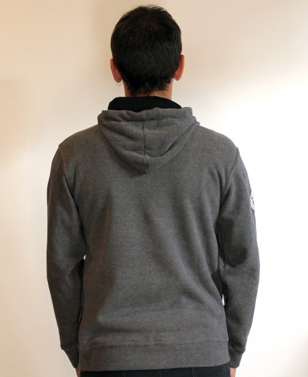- Color: gris oscuro y cordones y forro de la capucha en negro.