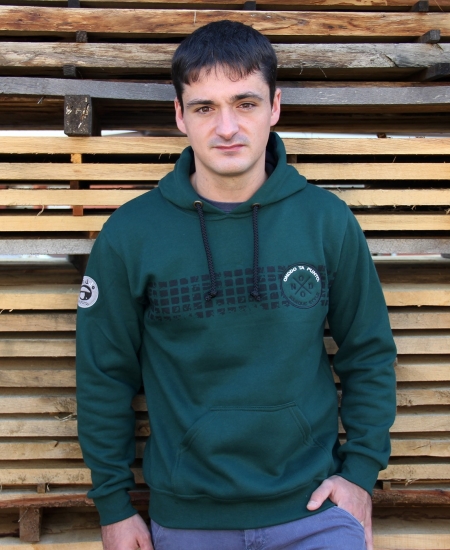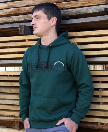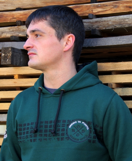 - Color: verde botella y cordones y forro de la capucha en negro.