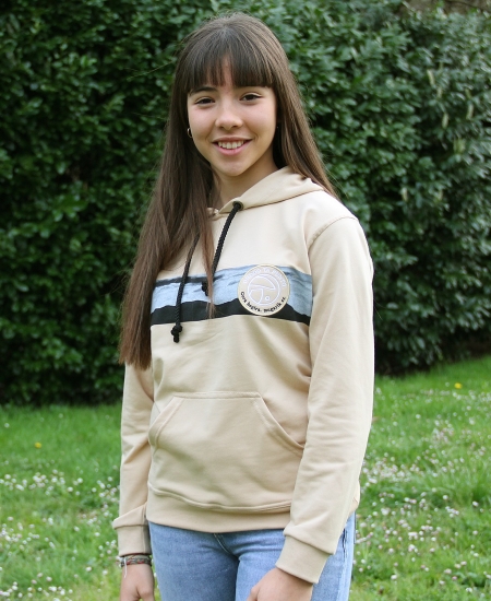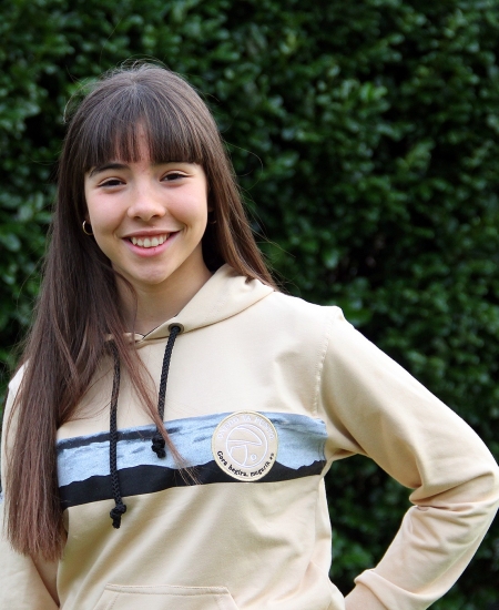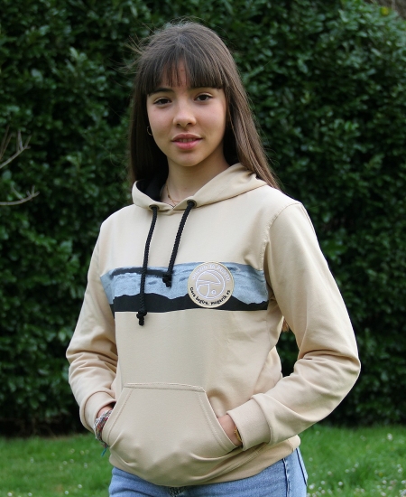 - Dibujo estampado de lado a lado y aplicación bordada del logo en el pecho.