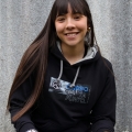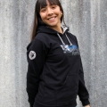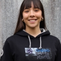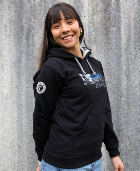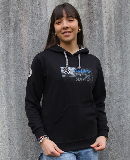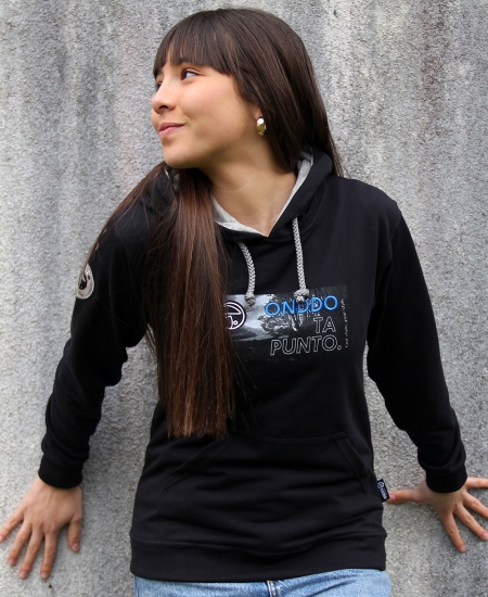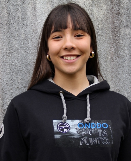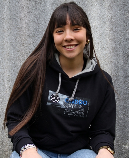 - Dibujo estampado en el centro y aplicación y bordado en azul.