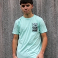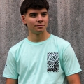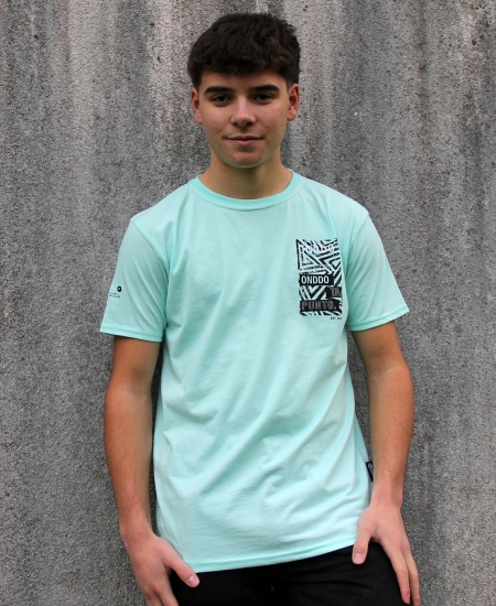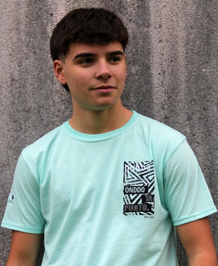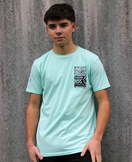 - Marrazkia estanpatua beltzan bularraren alde batean eta bordatua txurian.